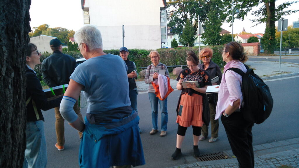 # In acht per Zufallsprinzip generierten Spaziergängen bewegten sich unterschiedliche Gruppen von BürgerInnen aus Königs Wusterhausen durch ihre Stadt, machten Skizzen zu verschiedenen Suchaufgaben, tauschten sich aus und kamen ins Gespräch