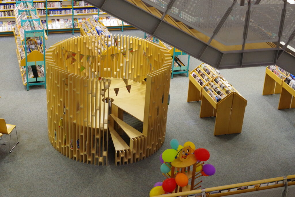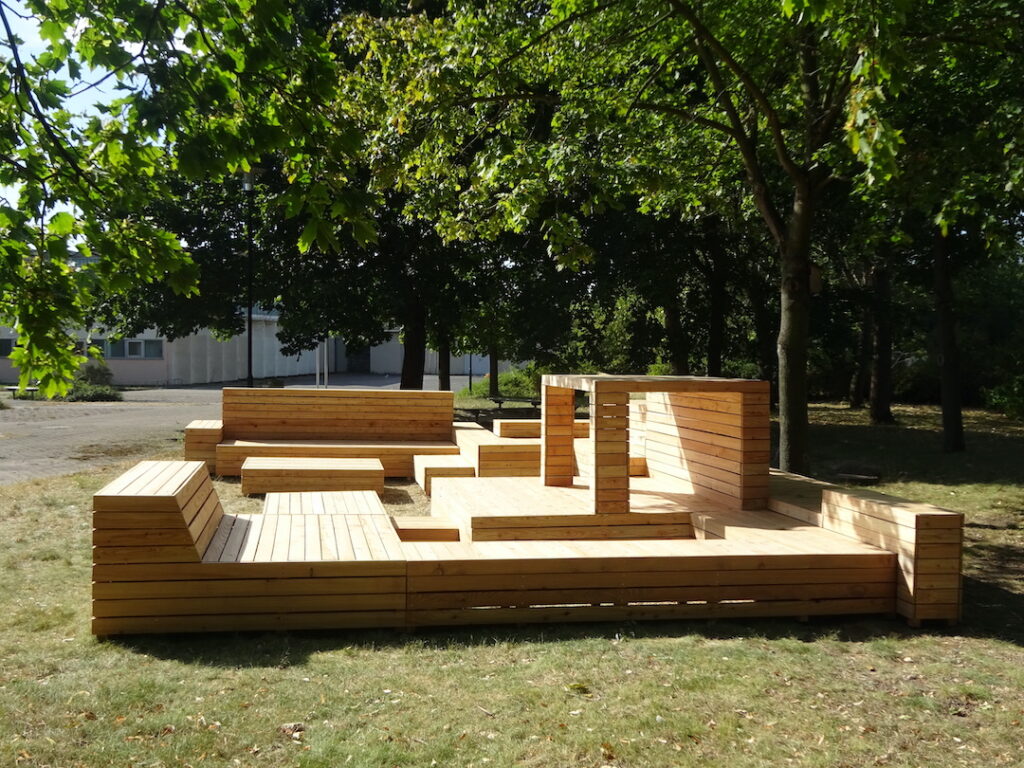 Partizipatives Möbelprojekt „Phantastische Möbelstücke für realistische Lesesituationen“ von Laura Hagemann, Ingolf Watzlaw und Friederike Meese, mit der Anna-Seghers-Bibliothek in Berlin Lichtenberg und der Grundschule am Faulen See, gefördert von der Ikea Stiftung; 2021/22