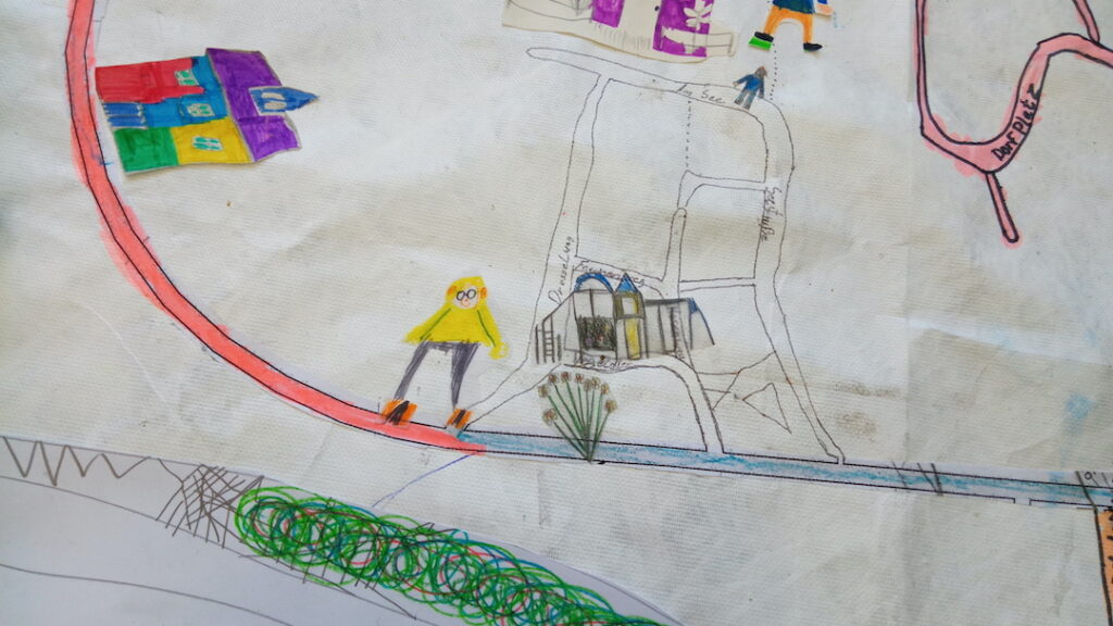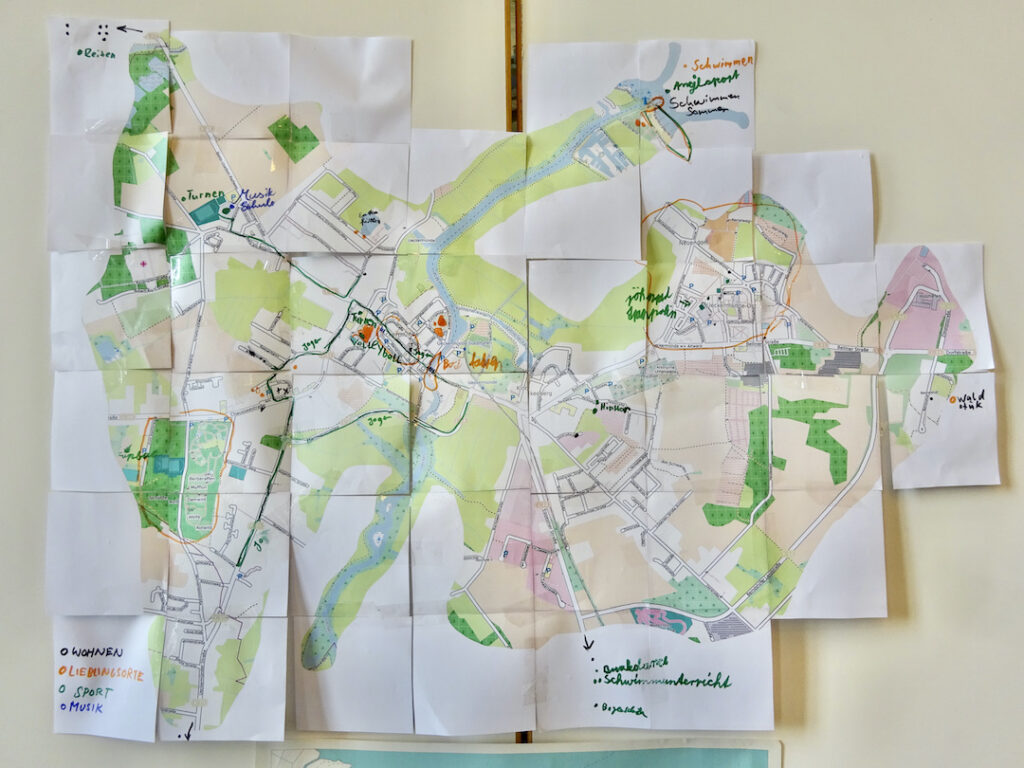 4 spielerisch angeleitete Stadtstreifzüge und ein mit Bewohnerinnen entstehender Stadtplan über beliebte und unbeliebte Fußwege in der Stadt Neuruppin