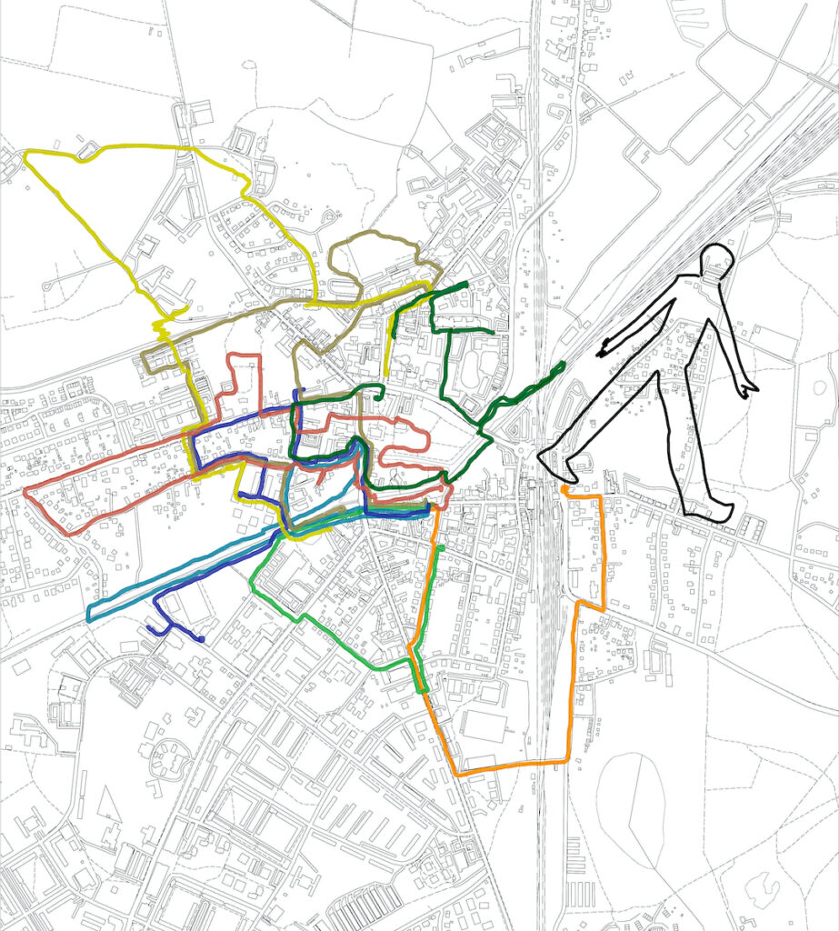 # In acht per Zufallsprinzip generierten Spaziergängen bewegten sich unterschiedliche Gruppen von BürgerInnen aus Königs Wusterhausen durch ihre Stadt, machten Skizzen zu verschiedenen Suchaufgaben, tauschten sich aus und kamen ins Gespräch