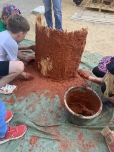 Rohstoffe sind das Ausgangsmaterial, von dem aus jedes Projekt startet. Sie können etwas haptisch greifbares sein, wie Lehm, Papier oder Holz, oder auch etwas ideelles, wie Geschichten, Wahrnehmungen oder Gespräche. Das Bewusstsein für den Rohstoff – wo kommt er her, wo geht er hin – ist immer Teil der Auseinandersetzung und des gemeinsamen Lernprozesses. Den Verbrauch von Rohstoffen gestalten wir so, dass wir sie immer als Teil eines Kreislaufes verstehen und so in diesen zurückführen, dass wir dem Planeten nicht schaden.